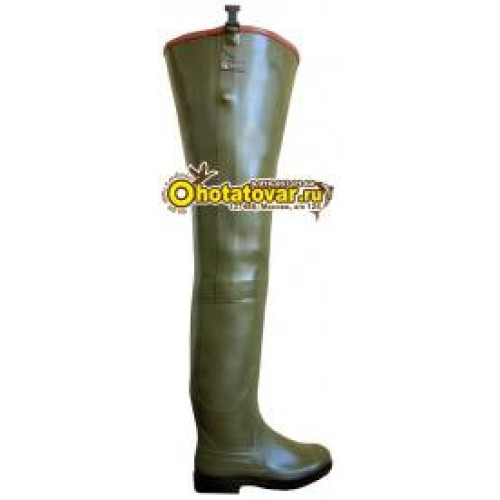 Высокие (до бёдер) болотные сапоги из натурального каучука. Подошва изготовлена из смеси каучука и полимера - это увеличивает эластичность и износостойкость. Внутри синтетический материал (быстросохнущий) со специальной антибактериальной пропиткой против образования плесени, и неприятного запаха внутри сапога (который свойственен большинству аналогов). Специальный съёмный ремешок позволяет фиксировать сапог (Вы можете пристегнуть его к одежде или ремню).
