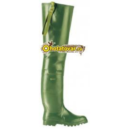 Высокие (до бёдер) болотные сапоги из натурального каучука. Подошва изготовлена из смеси каучука и полимера - это увеличивает эластичность и износостойкость. Внутри быстросохнущая хлопковая подкладка. Специальный съёмный ремешок позволяет фиксировать сапог (Вы можете пристегнуть его к одежде или ремню).