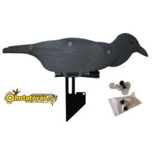 Чучела поставляются в коробках по 6 штук чучел в виде профиля вороны, но только в интернет-магазине Ohotatovar.ru Вы можете купить чучела вороны NRA FUD поштучно. Чучела вороны сделаны из неопрена - очень устойчивы к условиям использования (действие воды, грязи, случайного попадания дроби). У чучел вороны поворачивается голова - каждое чучело может принять индивидуальную позу, создав тем самым реалистичную картину. Муляжи вороны снабжены металлической стойкой, что позволяет чучела удобно фиксировать в земле и избежать переворачивания на лужах. Чучела относительно стойки могут быть зафиксированы в трех положениях. Муляжи вороны очень компактно складываются в плоское положение - удобно для хранения и перевозки. Запасной комплект пластиковых фиксаторов элементов из которых состоит чучело пригодятся на случай утери. Габариты чучел 17x14x44 см. Габариты чучел 12x14x46 см. Вес одного чучела вороны 150 грамм.