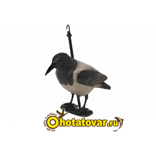 Объемная пустотелая чучалка ворона серая с лапами на опоре выполнена из ударопрочного пластика. Применяется на гусиной и утиной охоте: чучело ворона высаживается в непосредственной близости к засидке охотника, на месте с хорошим обзором (например прямо на шалаше). Для птицы это служит доказательством того, что место абсолютно спокойно и безопасно. Кроме того, это чучело вороны используют при охоте на ворон, сорок и соек.