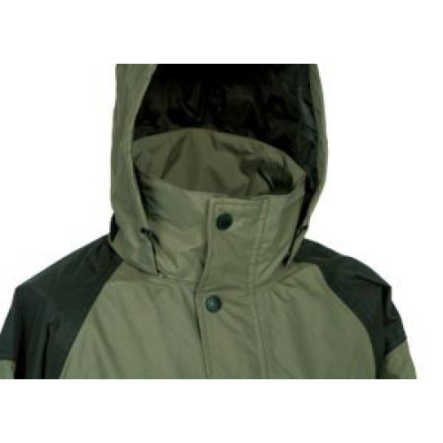 Удобный непромокаемый костюм для прохладной погоды и межсезонья. Куртка длинная с капюшоном (пристёгнут на молнии) и брюки с завышенной поясницей со шлёвками под ремень. На куртке 2 врезных кармана, закрыты кулисками, 2 внутренних кармана на молнии и специальный карманчик для мобильного телефона. Мембранная ткань. Все швы проклеены. Пояс брюк сделан эластичным (на резинке). Низ штанин снабжён молнией для удобства снятия/надевания. Рекомендованный температурный режим использования от 0 °С до +17°С. Комбинированный светло- и тёмно-зелёный цвет.