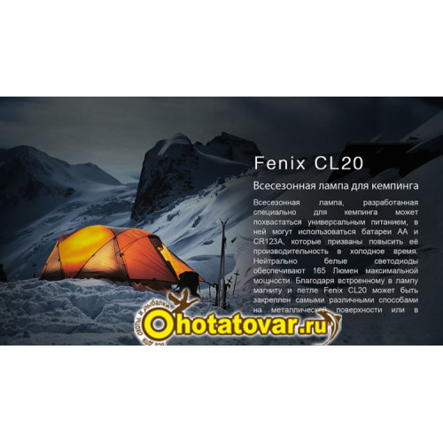С выпуском модели фонаря Fenix CL20, компания Fenix начала производство нового типа осветительных приборов — фонарей для кемпинга. В это устройство специалисты компании вложили весь набор функций и технических характеристик, которые пользователи хотели бы видеть у фонарей для обустройства туристического лагеря.