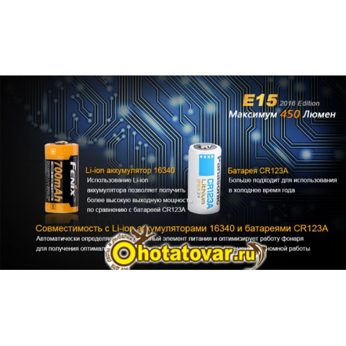 - поддержка форматов батарей 16340 и CR123A;