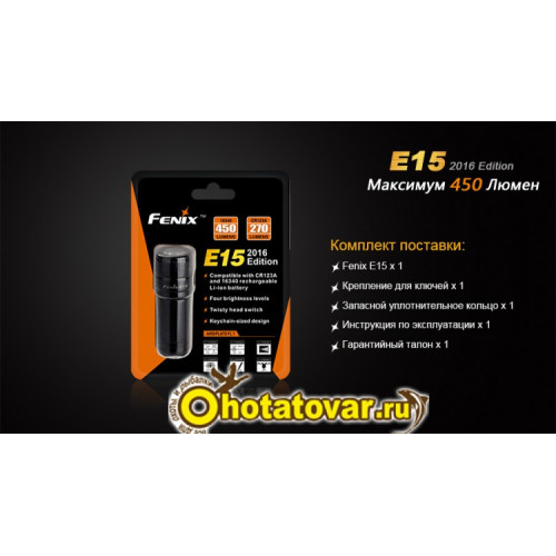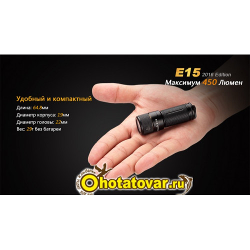 - без элементов питания Fenix E15 весит 29 г;