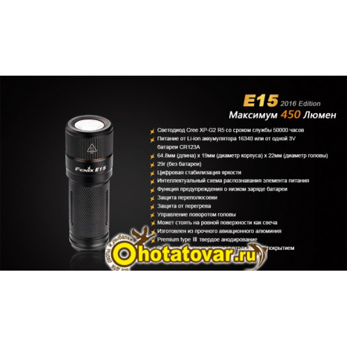 Купить фонарь Fenix E15 Cree XP-G2 (R5) LED (2016) в интернет магазине Охота Товары с гарантией 5 лет от производителя