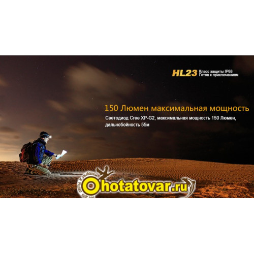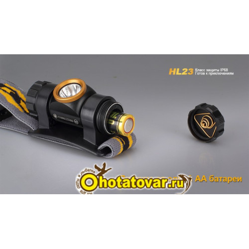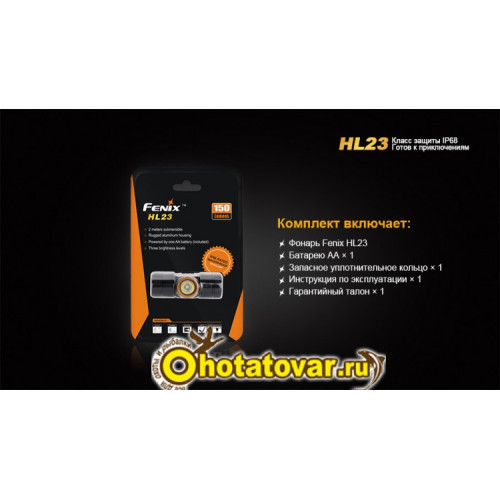 Комплектация: фонарь Fenix HL23, запасное уплотнительное кольцо, батарейка АА.