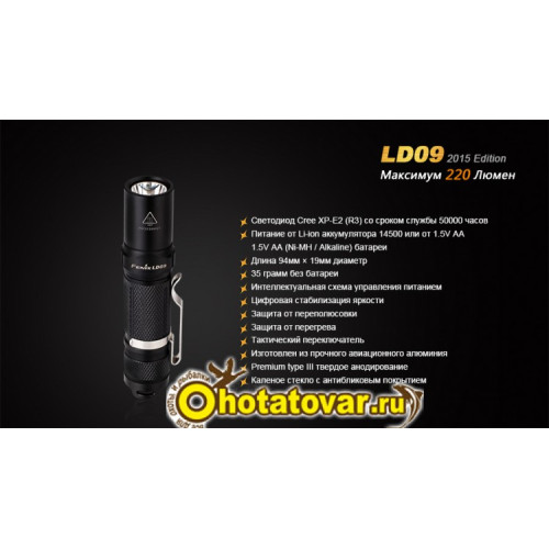Купить фонарь Fenix LD09 Cree XP-E2 (R3) LED (2015) в интернет магазине Охота Товары с гарантией 5 лет от производителя