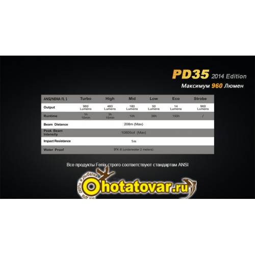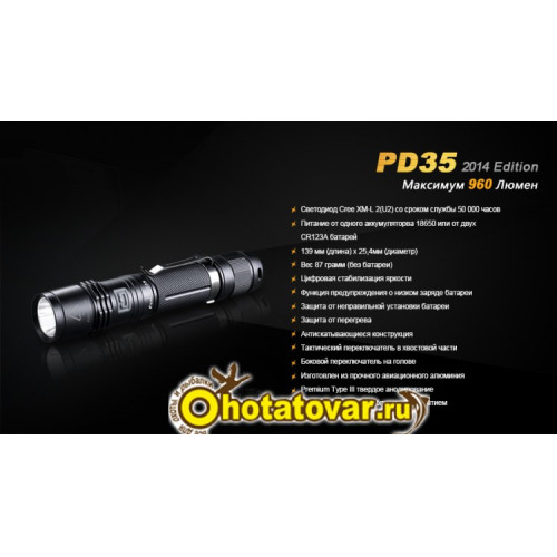 Купить фонарь Fenix PD35 (2014 Edition) Cree XM-L2 в интернет магазине Охота Товары с гарантией 5 лет от производителя