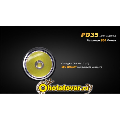 Самый новый светодиод CREE XM-L2, который установлен в PD35 экономичнее аналогичных моделей на 20%, что хорошо влияет на длительность работы фонаря без подзарядки. Плюс ко всему, возросла максимальная мощность до 960 люмен. Также порадует холодно-белый свет диода, который намного эффективнее нейтральных оттенков.