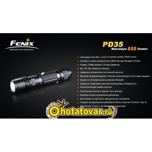Купить фонарь Fenix PD35 Cree XM-L2 (U2) в интернет магазине Охота Товары с гарантией 5 лет от производителя