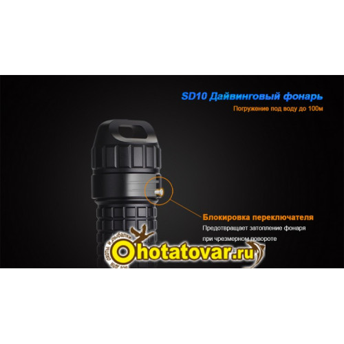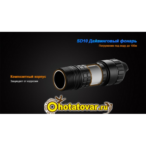 Модель фонаря Fenix SD10 Cree XM-L2 (T6) предназначена специально для дайверов и любителей подводной рыбалки. Этот фонарь свободно выдерживает погружение до отметки в 100 метров. Его корпус дополнительно защищен от протекания при помощи двойных уплотнительных колец в местах соединения отдельных деталей. Оболочка фонаря изготовлена из авиационного алюминия и хорошо защищает осветительный прибор от механического повреждения. Коррозии корпус тоже не боится.