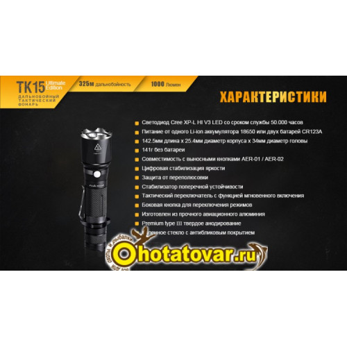 Купить фонарь Fenix TK15UE CREE XP-L HI V3 LED Ultimate Edition в интернет магазине Охота Товары с гарантией 5 лет от производителя