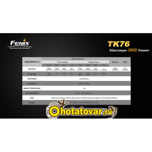 Фонарь Fenix TK76 XM-L2 (U2), XM-L2 (T6) описание