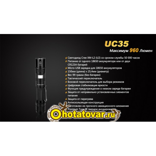 Купить фонарь Fenix UC35 XM-L2 (U2) в интернет магазине Охота Товары с гарантией 5 лет от производителя