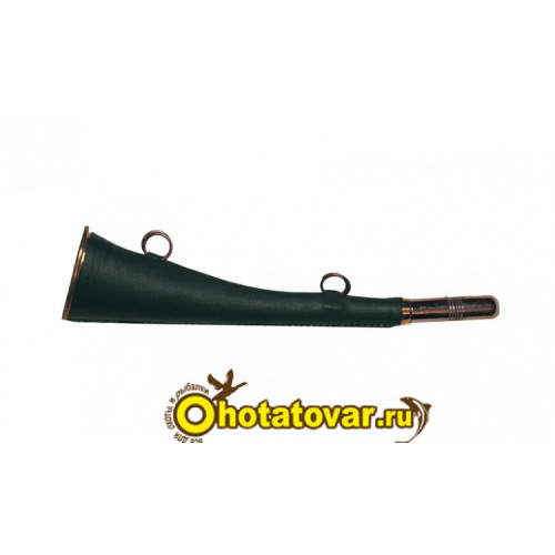 Горн охотничий (кожаная отделка) 25 см, плоский, цвет тёмно-зелёный