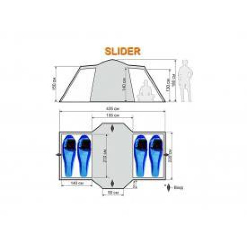 Материал POLYESTER TAFFETA, из которого изготовлен тент палатки, не выпускает теплый воздух, а также надежно защищает поверхность от дождя и снега. Материал внутренней части двухслойной палатки Maverick SLIDER выполнен из «дышащей» ткани POLYESTER TAFFETA, поддерживающей внутри комфортную температуру и уровень влажности. В- 6-местной палатке Maverick SLIDER также предусмотрены дополнительные воздуховоды.