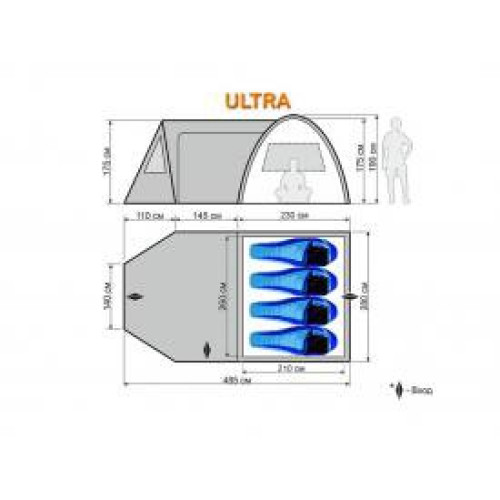 Размер внутренней палатки (ДхШхВ - 210х280х195