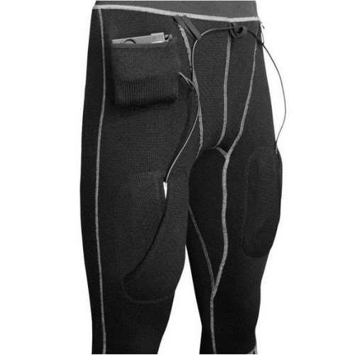 Расположение греющих элементов: В фуфайке один греющий элемент большего размера расположен на спине в области поясницы и два стандартных на лопатках. В кальсонах два греющих элемента расположены на передней стороне бедра. Греющие элементы размещаются в специальных карманах. Греющие элементы фуфайки и кальсон подключаются к одному аккумулятору через переходник.