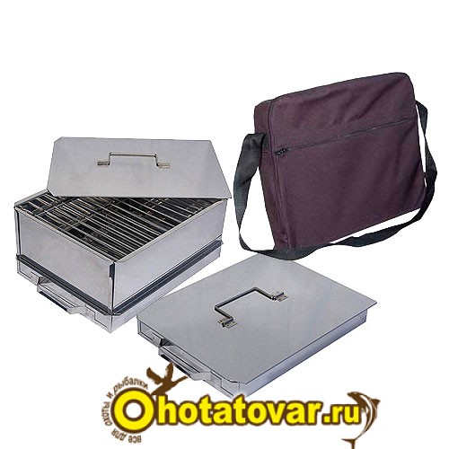 Коптильня-дипломат (разборная) двухъярусная с поддоном для сбора жира. Это уникальная разработка специалистов. В собранном состоянии коптильня-дипломат имеет размеры 405х305х55, что делает транспортировку коптильни более легкой и комфортной. Поддон для сбора жира препятствует попаданию жира на щепу и сохраняет удивительный вкус копченых продуктов.