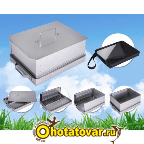 Данная коптильня состоит из металлического короба с шарнирно закрепленными боковыми и съемными торцевыми стенками, снабжена слайдерной крышкой с замком, поддоном для сбора жира и решетками для размещения пищевых продуктов. Все компоненты выполнены из жаропрочной нержавеющей стали. Комплектуется оригинальной сумкой с длинной ручкой. Предупреждение: во избежание порезов и ожогов сборку/разборку и эксплуатацию коптильни производите в перчатках. Коптильня соответствует санитарно-эпидемиологическим требованиям, правилам и нормативам.