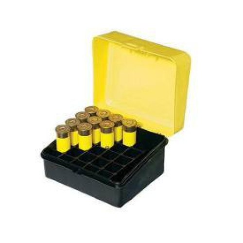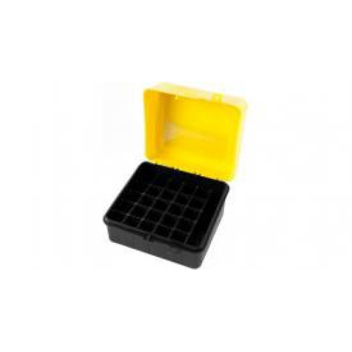 Коробка для 25 патронов изготовлена из стойкого к ударам пластика, имеет индивидуальные ячейки и подходит для 20 калибра. Она оснащена удобной откидной крышкой ярко желтого цвета. Коробка предохраняет патроны от загрязнения, пыли и влаги. Её удобно использовать не только во время охоты, но и в помещении для хранения патронов.