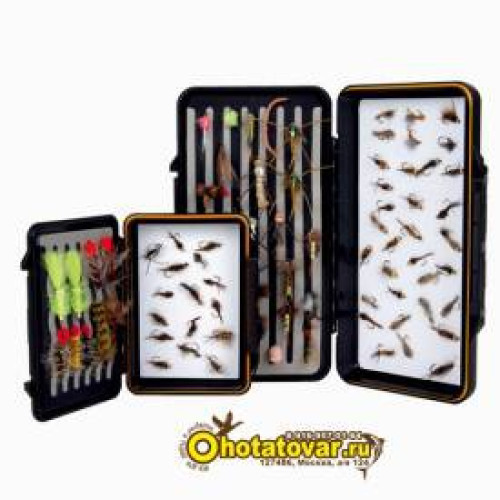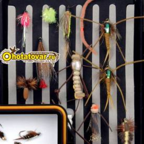 Тонкий дизайн, легкая конструкция. Запатентованное надежное крепление мух без использования их крючков. Волнистая пенка в крышке, магнитная защелка.
