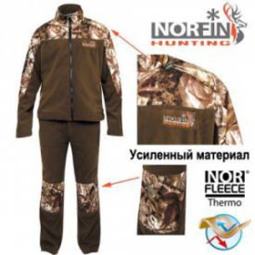 Комфортный теплый костюм cвободного кроя. Рекомендуется для активного отдыха на природе и ежедневной носки. Костюм имеет усиление материала прочными накладки на местах, подверженных повышенным нагрузкам. КУРТКА: Свободный крой. Передняя застежка-молния. Высокий воротник. Усиление материала на плечах и локтях. Фиксатор, стягивающий низ куртки. Два боковых кармана. Нагрудный карман. ШТАНЫ: Свободный крой. Усиление материала сзади и на коленях. Два боковых кармана. Эластичный пояс. Материал: NORfleece Thermo (100% полиэстер)