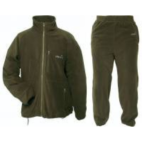 Функциональный удобный теплый костюм из мягкого флиса. Дизайн и свободный покрой костюма позволяют его использовать не только как верхнюю одежду, но и как утеплительный слой в сильный холод. Куртка с высоким воротником застегивается на молнию. В области подмышек установлена дополнительная вентиляция. Три наружных кармана. Снизу куртки есть утяжка для защиты от продувания ветром. Штаны снабжены эластичным поясом и двумя карманами.