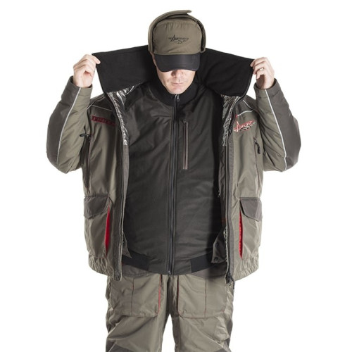 К данному костюму прилагается внутренняя куртка, выполненная из ворсовой ткани Алова без пленки и утеплитель «Альполюкс». Костюм рассчитан на экстремальный температурный режим до -50 C°. Основные швы костюма, а также вся вышивка надежно загерметизированы специальной лентой. Костюм снабжен светоотражающими элементами, улучшающими видимость в темное время.