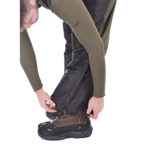 - внизу полукомбинезона в области икроножной мышцы штанины и низ брюк частично собран на резинку для более плотного прилегания.