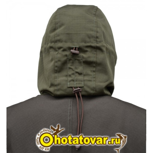 Капюшон с козырьком соединен с курткой широкой и высокой горловиной, полностью закрывающей шею. Капюшон регулируется, четко фиксируется в нужном положении, не перемещается во время активного передвижения.