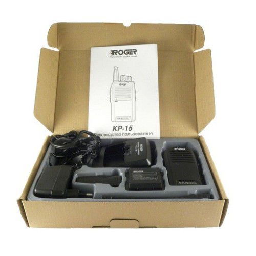 Рация Roger kp 15; Антенна к рации; Аккумулятор; Устройство зарядки; Клипса (на пояс); Инструкция по эксплуатации.