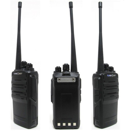 Рация Turbosky T3 предназначена для любительского использования. Работает с 16 каналами связи в верхнем частотном диапазоне. В комплект поставки рации входит Li-Ion аккумулятор на 1800 mAh. Заряда такого аккумулятора хватает на 15 часов работы с рацией.Радиостанция Турбоскай 3 поступила в продажу в 2015 году. Имеет хорошие функциональные возможности, включающие такие режимы, как шумоподавление, сканирование, голосовая передача VOX, кодирование DT/DQT.
