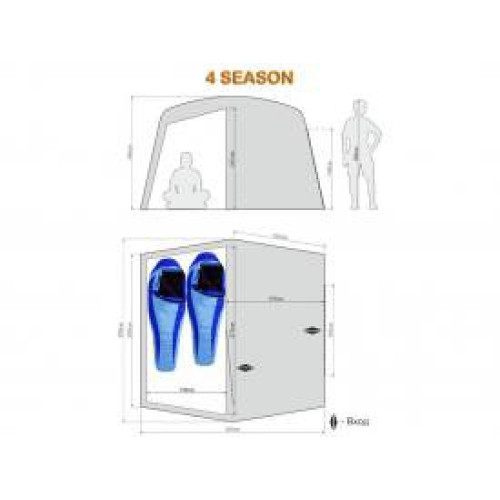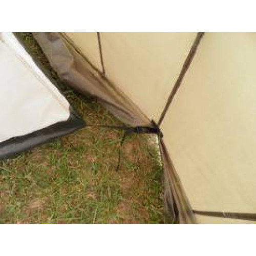 Основа конструкции шестигранного купола шатра 4 SEASON - быстросборный каркас из фибергласса, созданный с использованием системы RAPIDEX® QUICK ERECT SYSTEM, благодаря которой даже неподготовленный турист сможет самостоятельно установить палатку в сжатые сроки. Замки дуг сделаны из ударопрочной термопластичной смолы АБС, которая не теряет своих свойств даже при экстремально высоких (до +40) и низких (до -80) температурах. Конструкция отлично противостоит сильным порывам ветра благодаря 6-ти точкам опоры и ветровым оттяжкам.