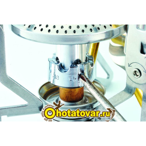 - Автоматическая система прочистки форсунки. Для этого мультитопливную горелку перед использованием нужно потрясти вертикально несколько раз. Также форсунку можно дополнительно прочистить иглой мультиинструмента, который идет в комплекте при продаже.