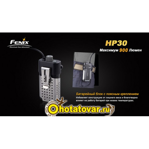 Дальность светового потока этого фонаря достигает 233 м. Этого достаточно для создания комфортного уровня освещения даже в густом тумане или в подземной пещере. Выносной батарейный отсек фонаря Fenix HP30 CREE XM-L2 рассчитан на 2 аккумулятора типа 18650 или 4 формата CR123A. Его можно как разместить на системе ремешков на голову, так и прикрепить на поясной ремень или положить в карман. Более того, в конструкции батарейного блока предусмотрен разъем USB, через который от фонаря можно заряжать другие портативные устройства. А для лучшего охлаждения элементов питания и их защиты от возможного повреждения, аккумуляторный отсек помещен в специальную алюминиевую конструкцию.