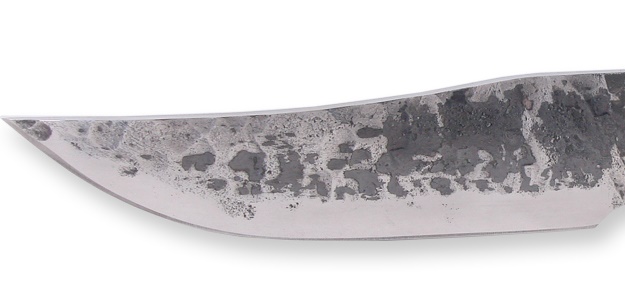 Нож ГУСАР (8481) 9хс - нож ручной ковки с клинком из стали 9ХС производится в Нижегородской области. Клинок выкован и оттянут с помощью наклёпа, вручную. Нож не имеет стандартной заточки. Острота клинка обеспечивается за счет спусков, выведенных в ноль. Например, тем же способом заточена опасная бритва, хотя и у бритвы есть заточка. Сталь 9ХС — является инструментальной сталью, из которой выполняются метчики и сверла по металлу. Клинок ножа имеет толщину 4 мм и закалку до твердости 64 HRC. Рукоять ножа, выполненная из кожи и эбонита, украшена декоративными вставками и художественным литьём из мельхиора. Не рекомендуется рубить ножом с тонкой подводкой режущей кромки, потому что ввиду тонкого острия, режущая кромка может крошиться. Такой нож создавался для легкого реза, отлично подойдёт для разделывания дичи. Однако сталь имеет склонность к окислению и требует ухода, как любой инструмент. Каждый нож имеет соответствующий сертификат по ГОСТ Р 51644-2000 Ножи разделочные и шкуросъемные или ГОСТ Р 51501-99 Ножи туристические и специальные спортивные. Ножи ручной ковки это отличный выбор для охотников, туристов или просто любителей красивого и надежного оружия.