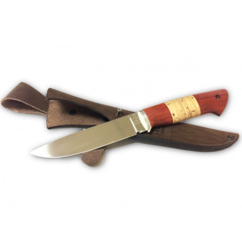 Нож кованая сталь 95x18 Гид укомплектован индивидуальными ножнами из натуральной кожи, так же прилагается сертификат государственного образца.