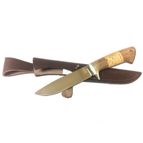 Нож кованая сталь 95x18 Лидер укомплектован индивидуальными ножнами из натуральной кожи, так же прилагается сертификат государственного образца.