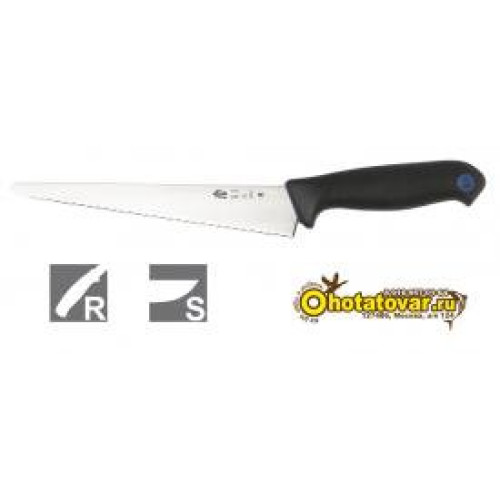 Кухонный нож Mora для нарезки хлеба. Рекомендован для использования в промышленных целях на предприятиях пищевого производства и в сфере оказания услуг питания. Резиновая рукоять защищает от выскальзывания во влажных условиях. Закаленная нержавеющая сталь превосходно держит остроту заточки и нержавеет.