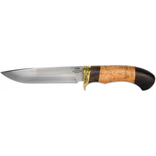 В качестве материалов для рукояти использованы: карельская береза, дерево венге, латунное литье. Рукоять имеет эргономическую форму, оснащена оковкой-ограничителем, благодаря чему исключается возможность травмирования руки при работе с ножом.