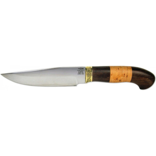 Для изделия характерен дизайн в стиле старинных охотничьих ножей.КУНИЦА (3365)к имеет красивую рукоять из древесины венге и бересты, декоративное украшение из литья латуни. Острая форма клинка придает снаряжению оригинальный вид. Изделие комплектуется элегантными кожаными ножнами, в которых изделие защищено от загрязнения и лучше сохраняет первоначальный вид. В таких ножнах удобно носить нож в туристическом рюкзаке.