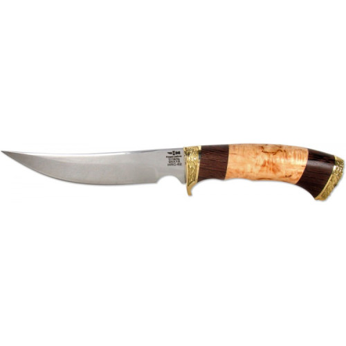 Нож имеет рукоять, выполненную из древесины карельской березы, придающей изделию особую роскошь и богатство.