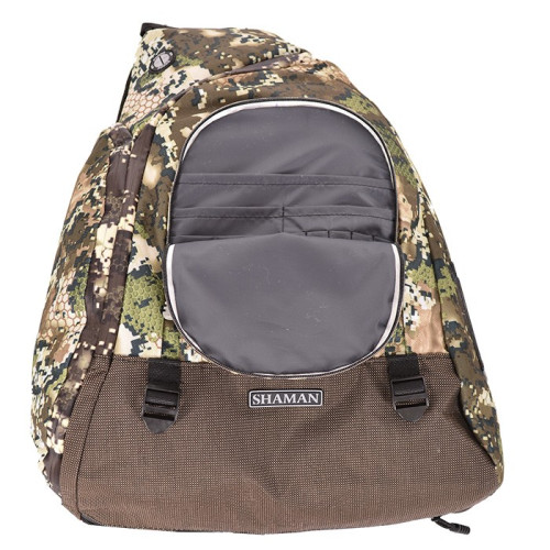 Shaman CROSSER — это удобный, компактный снаружи, но вместительный изнутри одноплечевой рюкзак. Имеет дополнительные отделения и карманы для размещения вещей и снаряжения, необходимого на охоте или рыбалке. Высокая эргономичность достигается за счет широкой лямки особой анатомической формы.