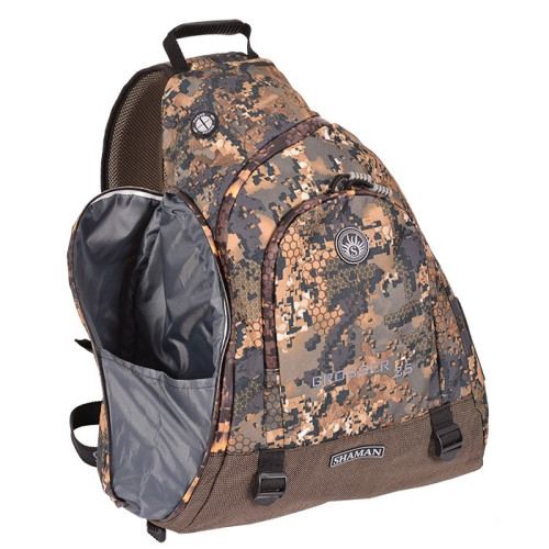Shaman CROSSER — это удобный, компактный снаружи, но вместительный изнутри одноплечевой рюкзак. Имеет дополнительные отделения и карманы для размещения вещей и снаряжения, необходимого на охоте или рыбалке. Высокая эргономичность достигается за счет широкой лямки особой анатомической формы.