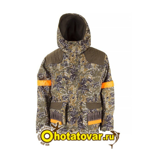 Оснащена 6-ю карманами. В области предплечий – яркие оранжевые полоски безопасности. В районе груди есть отверстия для вентиляции. В нижних карманах клёпками можно пристегнуть патронташи.