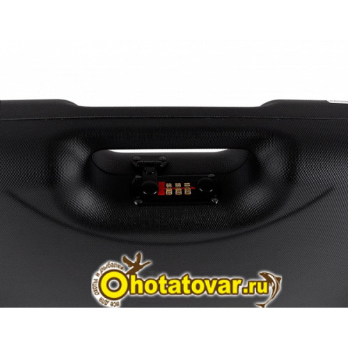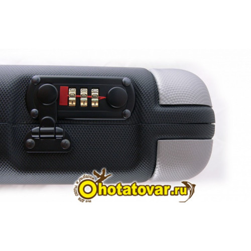 Изготовлен из пластика ABS, цвет – чёрный с серыми вставками по углам, серия «люкс», с отделениями, внутренняя отделка – темно-красный вельвет, в нижней половинке имеется специальная термоформа для удобного размещения оружия и аксессуаров в кейсе. 3 кодовых замка.