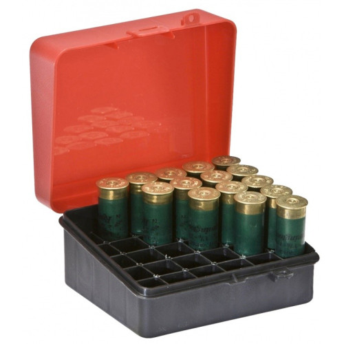 Коробка для патронов фирмы Plano - это прямоугольный футляр из ударопрочного пластика для хранения патронов с индивидуальными ячейками вместимостью до 25 патронов 12-16 калибра длиной до 70-76 мм.