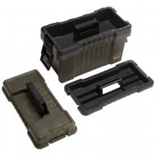 Ящик из ударопрочного пластика камуфляжной расцветки для хранения и транспортировки охотничьих принадлежностей и аксессуаров. Он также используется для чистки оружия. Для этой цели предназначена специальная подставка и два вместительных поддона (лотка) для мелких предметов и чистящих средств. Ящик имеет очень прочную конструкцию, удобную нескользящую прорезиненную ручку и оснащен надежными замками.