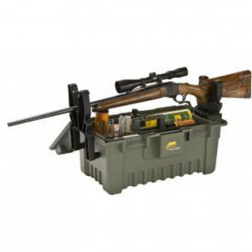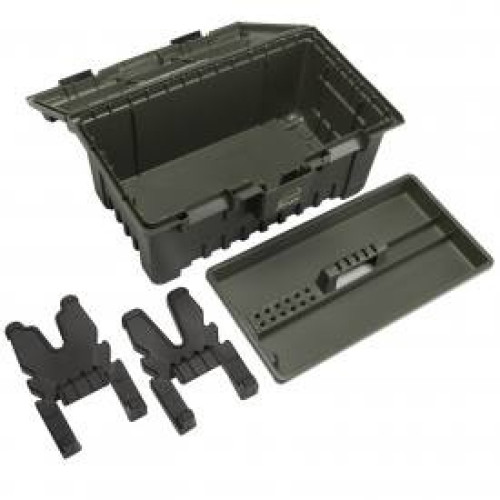 Вместительный ящик из ударопрочного пластика серого цвета для хранения и транспортировки охотничьих принадлежностей и аксессуаров. Он также предназначен для чистки оружия. Для этой цели имеется специальная подставка и два вместительных поддона (лотка) для мелких предметов и чистящих средств. Ящик имеет очень прочную конструкцию, эргономичную удобную ручку и оснащен надежными замками.
